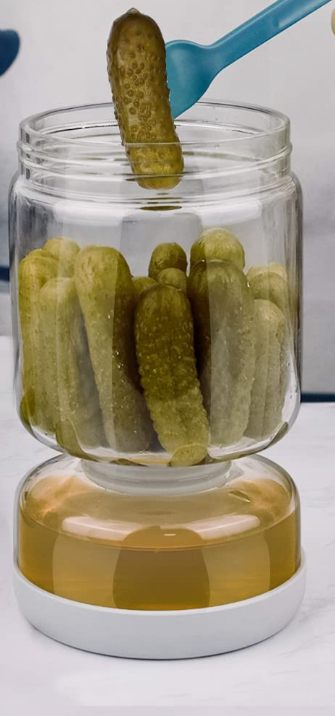 Homnoble Pickle and Olive Hourglass Jar with Strainer Flip for Pickle Juice Separator from Wet and Dry, Upgrade Food-grade ABS Lid and BPA Free Hourglass Pickle Jar for Airtight Food Storage